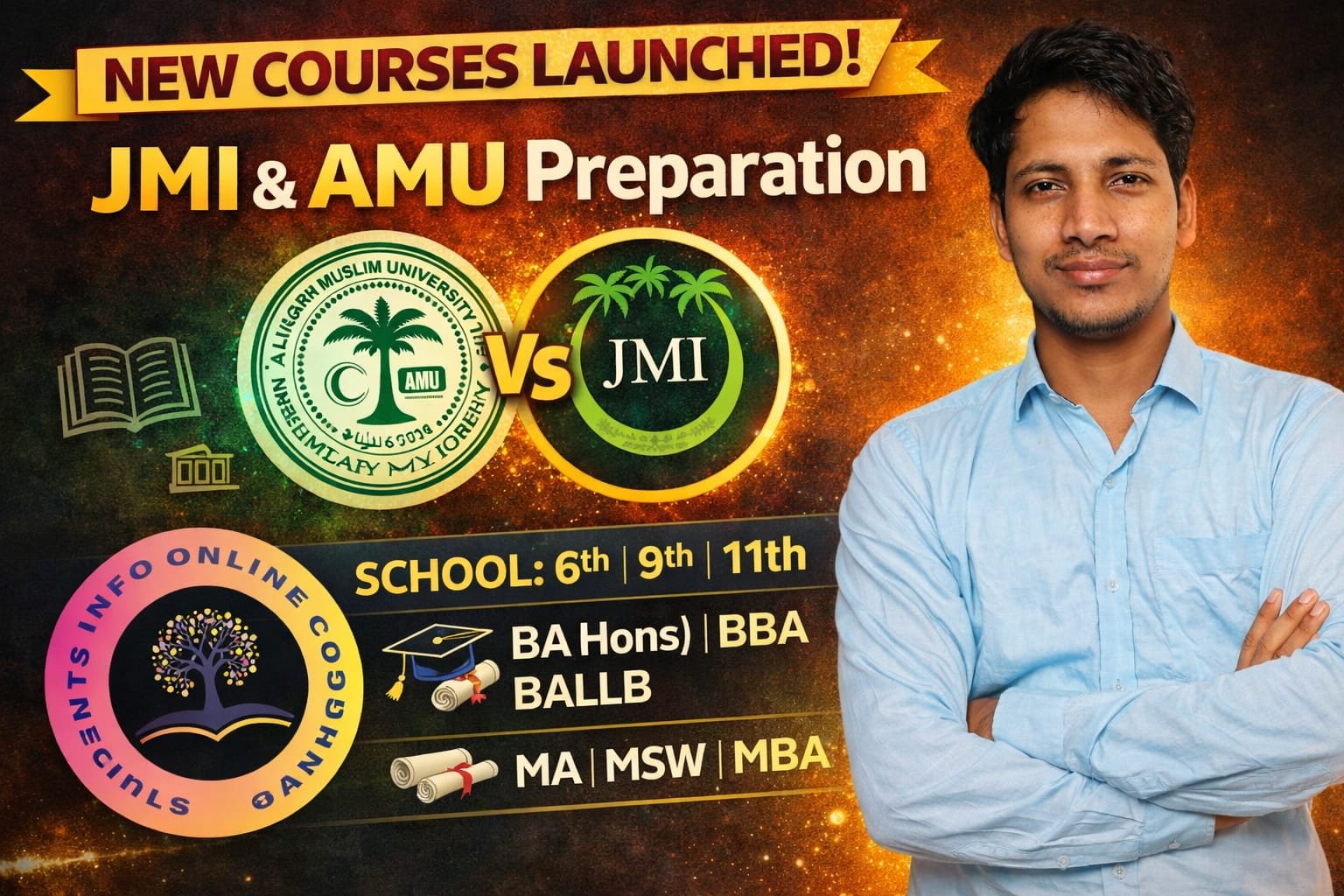 Studentsinfo.org is a comprehensive online education platform dedicated to helping students prepare for a wide range of competitive entrance exams across India. We specialize in preparation for JMI, AMU, and CUET exams, while also offering expert guidance and resources for other all-India entrance tests.